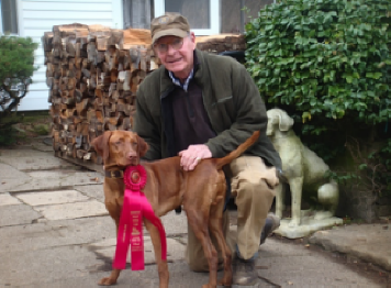 | Jackson Padilla owned by Ron and Ellen Padilla of Long Island, NY recently earned his JHA. Jackson is out of Spike's sister Delwood's Vizion Andrea Doria "Dory" and our Ch. Archiee, JH. | Rich Johnston in Pennsylvania with his dog Flint who earned his first leg of Jr Hunter on 9-20-14. Flint is out of our Ch. Lorrin, JH and 6xBISS Silver GCh. Just Spike, JH. Today, Oct. 5th Flint got all the qualifying scores needed to be a Junior Hunter before one year of age. Congratulations to Rick and Flint. |