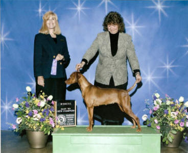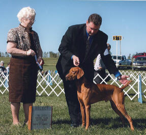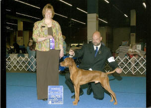 Una Roja, JH. See pictures of her on the Our Dogs/Females page. The next day at the same show, Jim's female Lorrin also won a 3 point