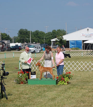 | Spike's Group 2 photo, July 17, 2011 from VCOI Specialty Show and Kishwaukee All Breed Dog Show. This is not our "official" show photo, but will work in the meantime. Judge is Sam Houston McDonald, Handler Chris Jones, and owner Linda Busch |