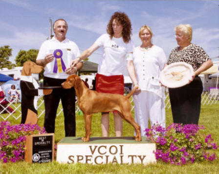 Vizsla Club's Specialty Show. Dam: Shiloh's Firecracker Jane, JH Sire: FC/AFC Raany, SH Congratulations Gary and Zak. Now for that field title! |